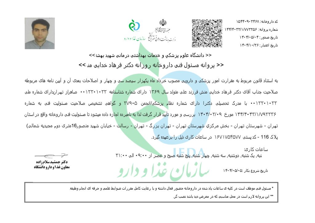 داروخانه روزانه دکتر فرهاد خدایی منش